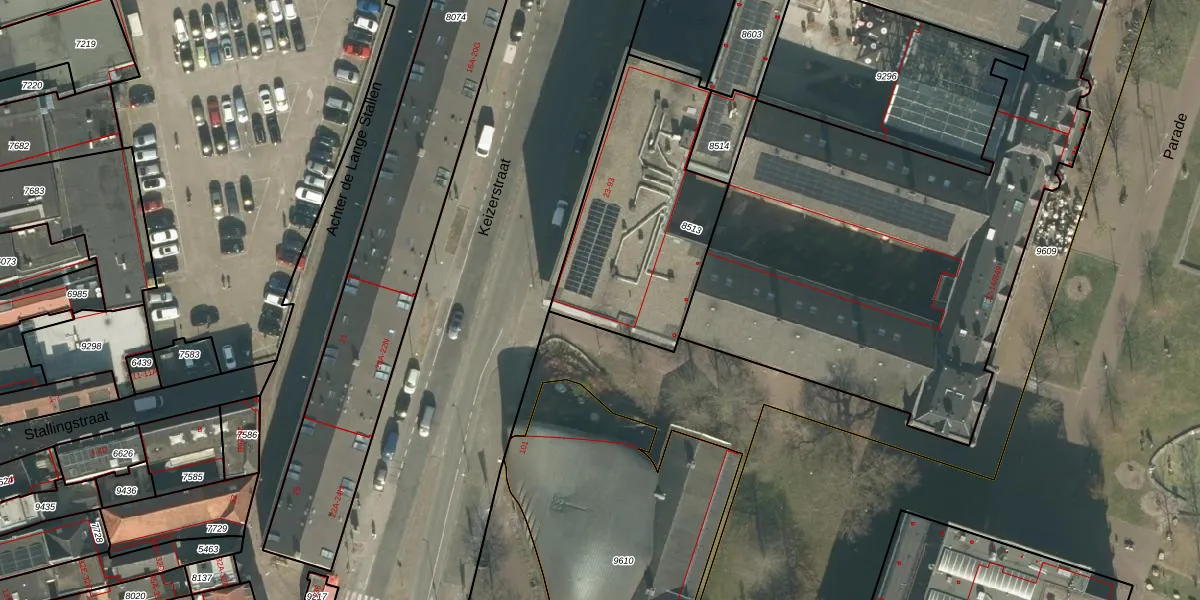 Het perceel waarop Keizerstraat 73 staat heeft een oppervlakte van 876 m². Dit is een groot perceel. De perceeloppervlakte wordt geregistreerd door het Kadaster. Gedetailleerde informatie over de maten van dit perceel kunt u vinden in het rapport Kadastrale kaart met maatvoering van Keizerstraat 73.