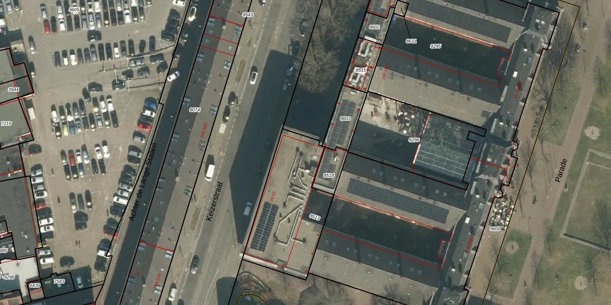 Het perceel waarop Keizerstraat 77 staat heeft een oppervlakte van 876 m². Dit is een groot perceel. De perceeloppervlakte wordt geregistreerd door het Kadaster. Gedetailleerde informatie over de maten van dit perceel kunt u vinden in het rapport Kadastrale kaart met maatvoering van Keizerstraat 77.