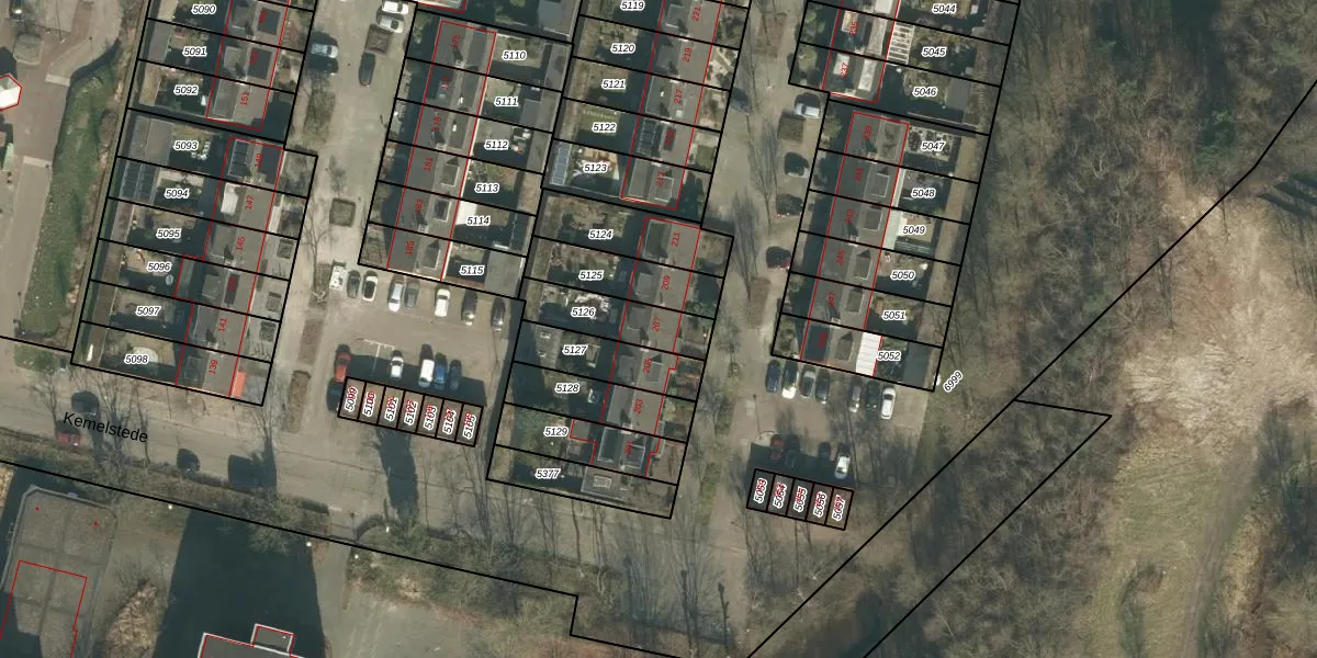 Gebruik de zoekbalk of klik op een perceel voor informatie over de adressen binnen dit perceel.