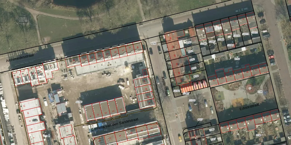 Het perceel waarop Keplerstraat 47-A staat heeft een oppervlakte van 5261 m². Dit is een zeer groot perceel. De perceeloppervlakte wordt geregistreerd door het Kadaster. Gedetailleerde informatie over de maten van dit perceel kunt u vinden in het rapport Kadastrale kaart met maatvoering van Keplerstraat 47-A.