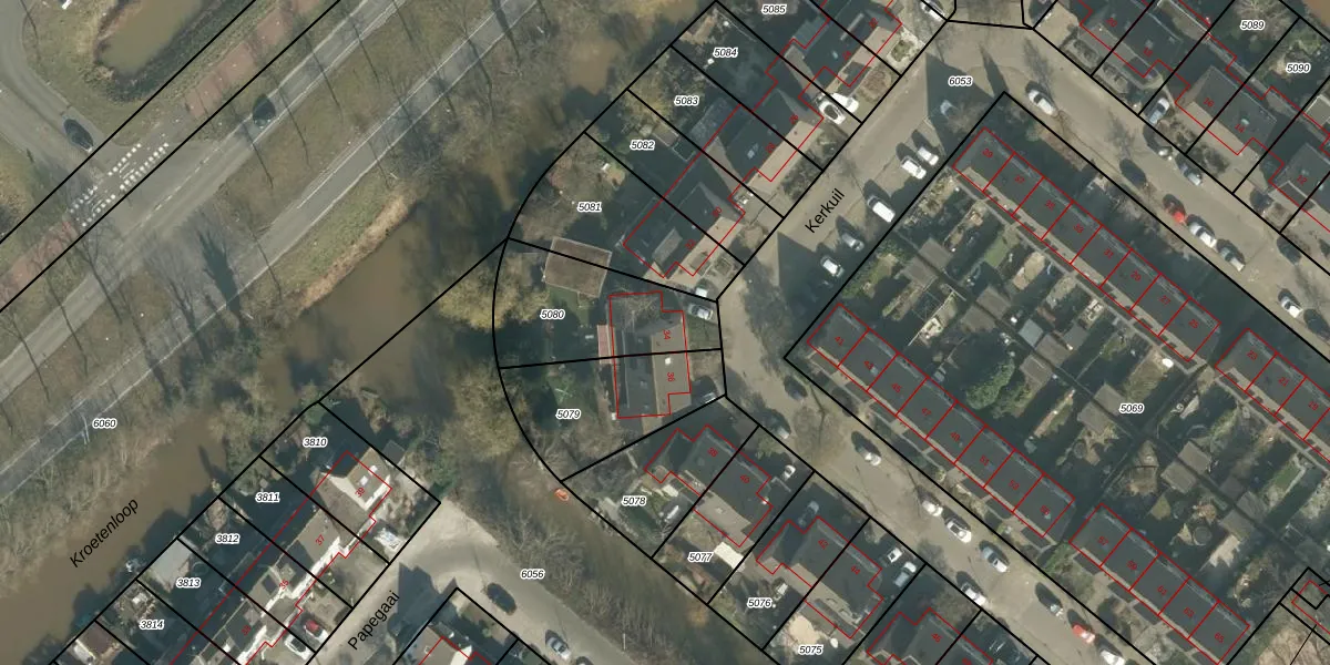 Het perceel waarop Kerkuil 34 staat heeft een oppervlakte van 450 m². Dit is een groot perceel. De perceeloppervlakte wordt geregistreerd door het Kadaster. Gedetailleerde informatie over de maten van dit perceel kunt u vinden in het rapport Kadastrale kaart met maatvoering van Kerkuil 34.