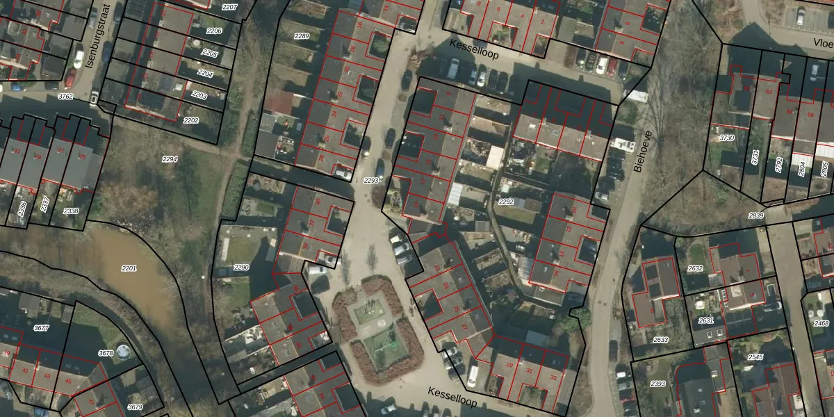 Het perceel waarop Kesselloop 19 staat heeft een oppervlakte van 3190 m². Dit is een zeer groot perceel. De perceeloppervlakte wordt geregistreerd door het Kadaster. Gedetailleerde informatie over de maten van dit perceel kunt u vinden in het rapport Kadastrale kaart met maatvoering van Kesselloop 19.
