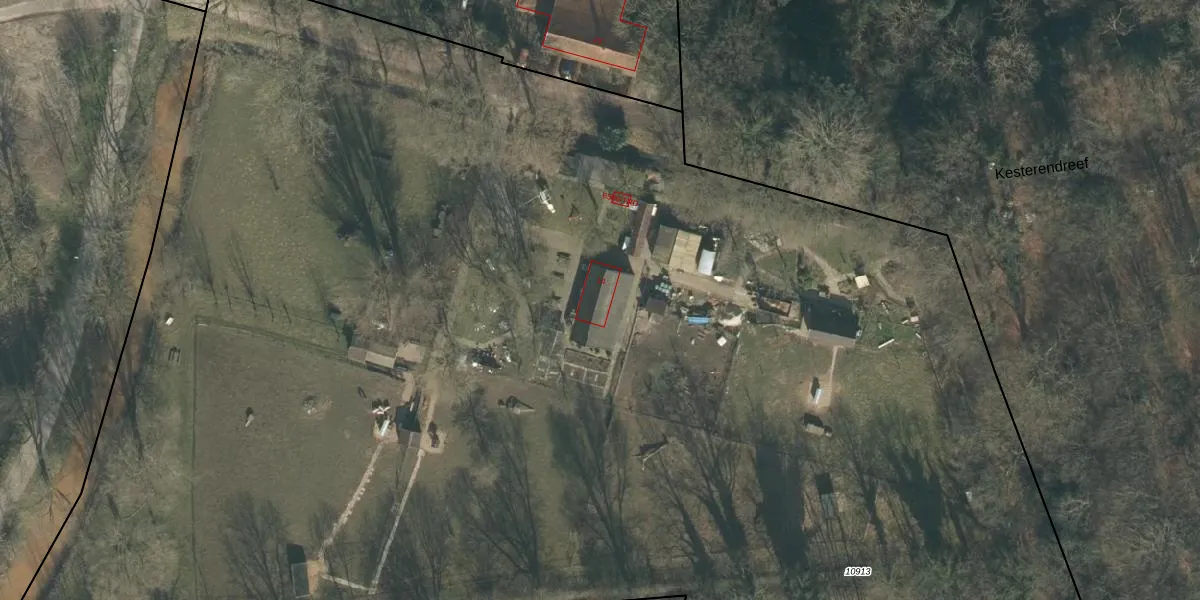 Het perceel waarop Kesterendreef 14 staat heeft een oppervlakte van 3,7 ha. Dit is een zeer groot perceel. De perceeloppervlakte wordt geregistreerd door het Kadaster. Gedetailleerde informatie over de maten van dit perceel kunt u vinden in het rapport Kadastrale kaart met maatvoering van Kesterendreef 14.