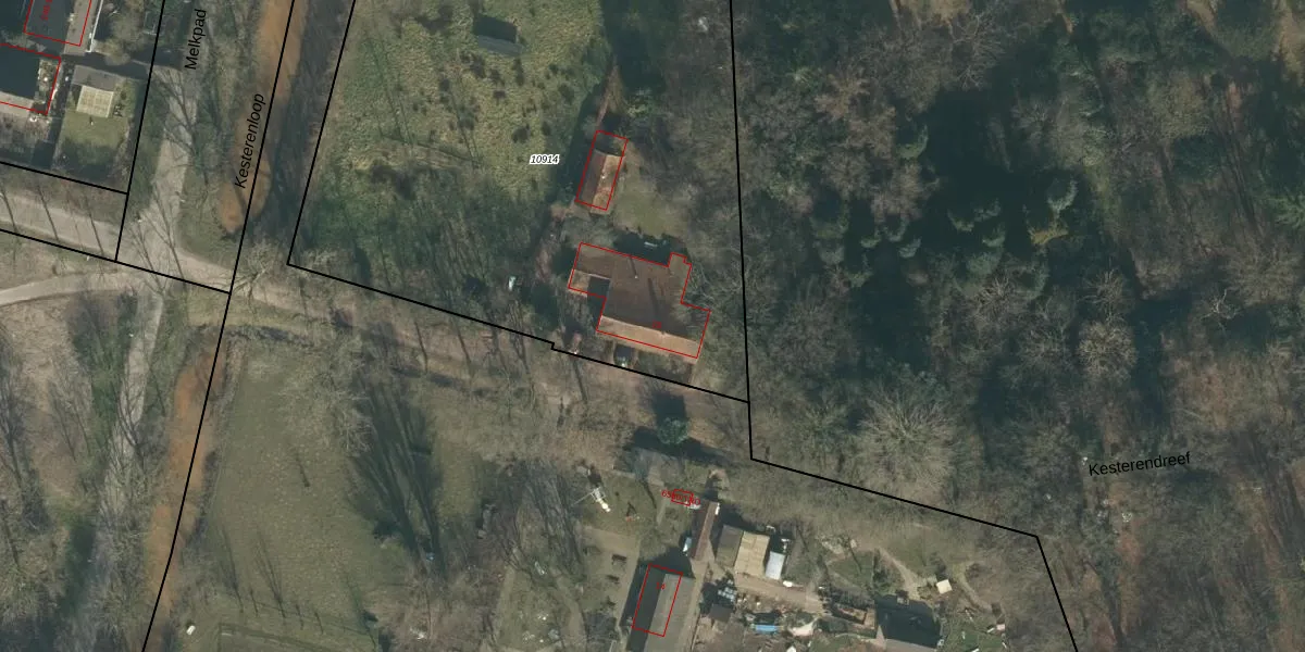 Het perceel waarop Kesterendreef 15 staat heeft een oppervlakte van 3555 m². Dit is een zeer groot perceel. De perceeloppervlakte wordt geregistreerd door het Kadaster. Gedetailleerde informatie over de maten van dit perceel kunt u vinden in het rapport Kadastrale kaart met maatvoering van Kesterendreef 15.