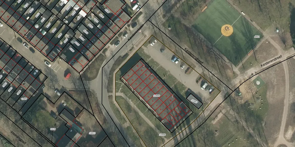 Kesterendreef 9-B is gelegen op kadastraal perceel BDA00H10999. Deze kadastrale aanduiding is uniek en wordt gebruikt door het Kadaster om eigendomsrechten en andere zakelijke rechten vast te leggen. Het perceel maakt onderdeel uit van de kadastrale gemeente Breda.
