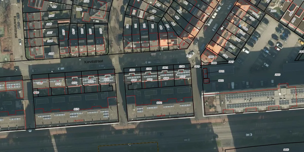 Kievitstraat 23 is gelegen op kadastraal perceel BDA00B9163. Deze kadastrale aanduiding is uniek en wordt gebruikt door het Kadaster om eigendomsrechten en andere zakelijke rechten vast te leggen. Het perceel maakt onderdeel uit van de kadastrale gemeente Breda.