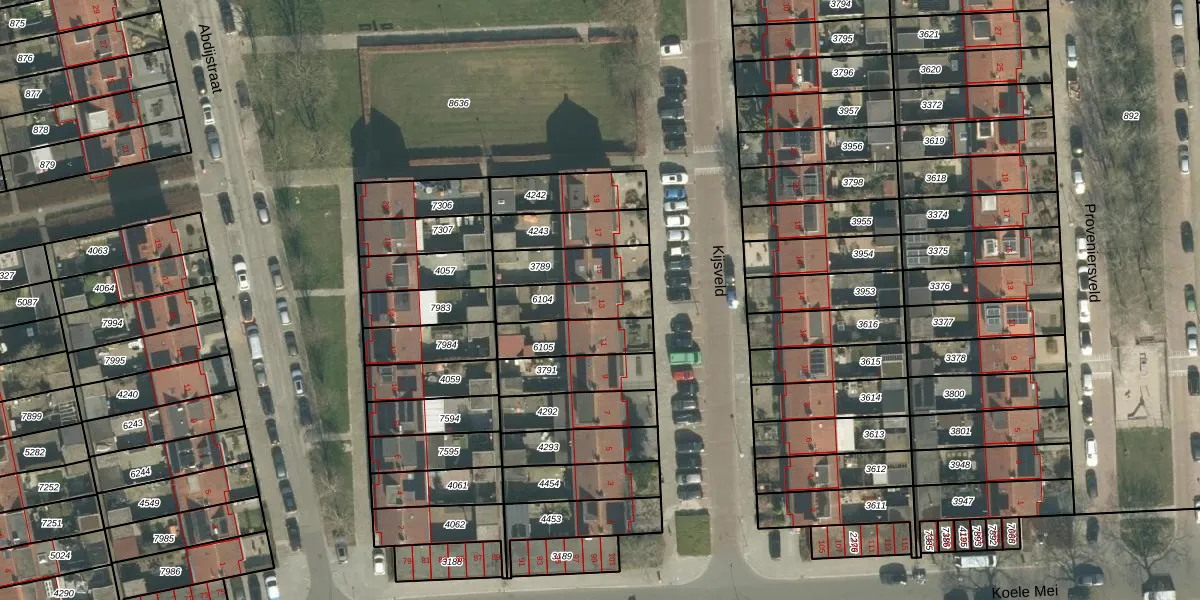 Gebruik de zoekbalk of klik op een perceel voor informatie over de adressen binnen dit perceel.