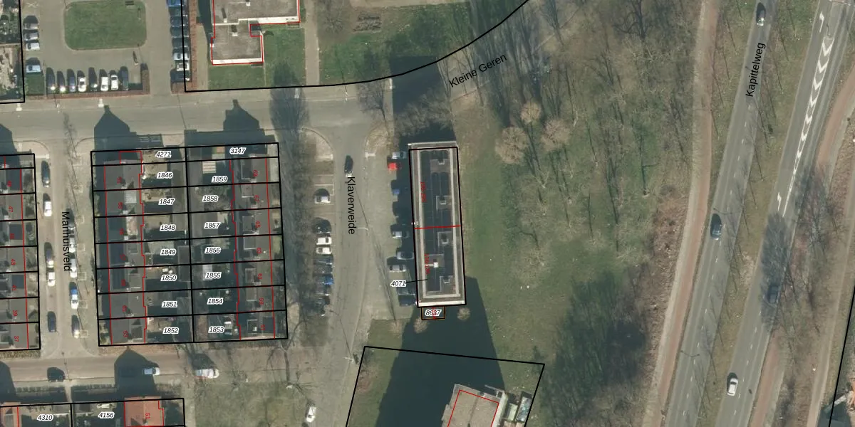 Het perceel waarop Klaverweide 138 staat heeft een oppervlakte van 412 m². Dit is een groot perceel. De perceeloppervlakte wordt geregistreerd door het Kadaster. Gedetailleerde informatie over de maten van dit perceel kunt u vinden in het rapport Kadastrale kaart met maatvoering van Klaverweide 138.
