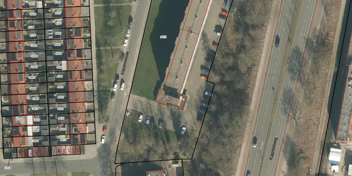 Het perceel waarop Klaverweide 20 staat heeft een oppervlakte van 5168 m². Dit is een zeer groot perceel. De perceeloppervlakte wordt geregistreerd door het Kadaster. Gedetailleerde informatie over de maten van dit perceel kunt u vinden in het rapport Kadastrale kaart met maatvoering van Klaverweide 20.