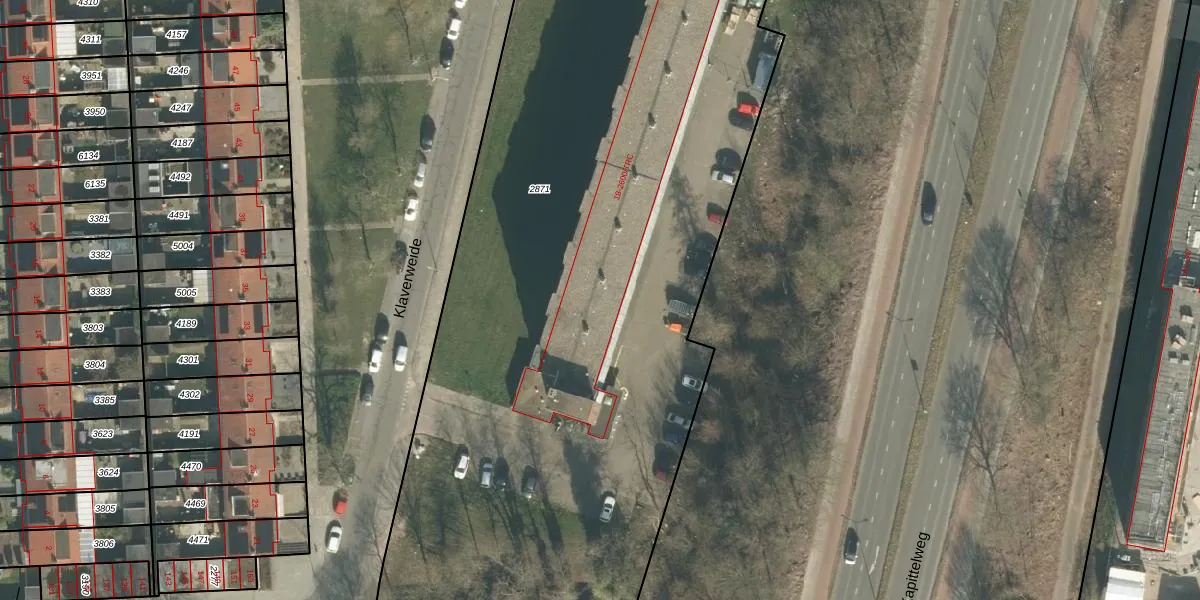 Het perceel waarop Klaverweide 36 staat heeft een oppervlakte van 5168 m². Dit is een zeer groot perceel. De perceeloppervlakte wordt geregistreerd door het Kadaster. Gedetailleerde informatie over de maten van dit perceel kunt u vinden in het rapport Kadastrale kaart met maatvoering van Klaverweide 36.