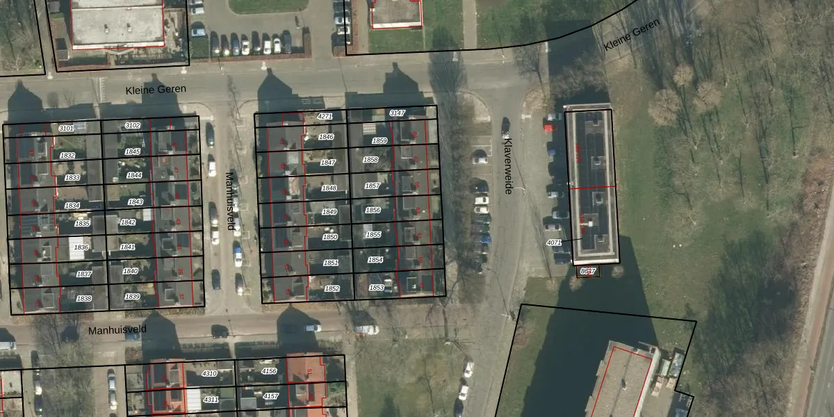 Gebruik de zoekbalk of klik op een perceel voor informatie over de adressen binnen dit perceel.