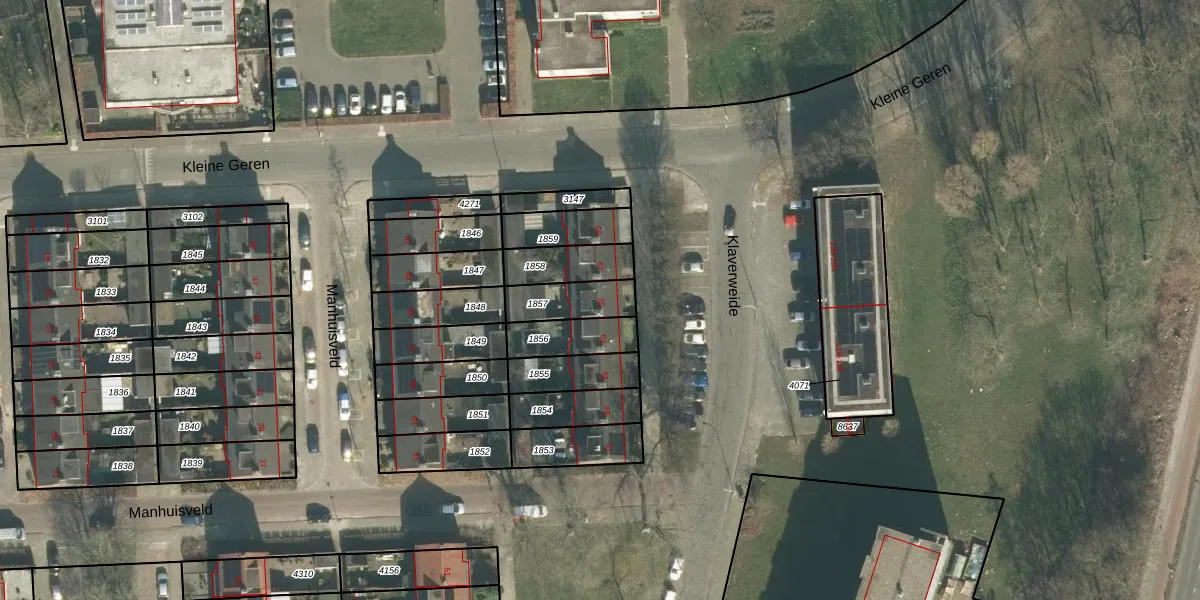Gebruik de zoekbalk of klik op een perceel voor informatie over de adressen binnen dit perceel.