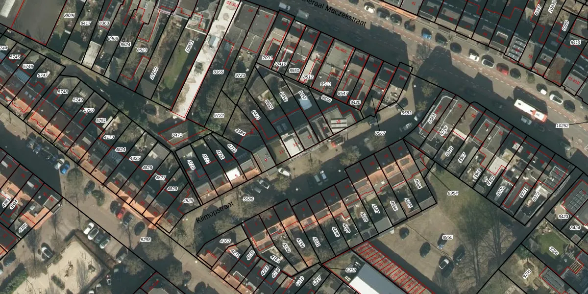 Klimopstraat 13 is gelegen op kadastraal perceel BDA00D8655. Deze kadastrale aanduiding is uniek en wordt gebruikt door het Kadaster om eigendomsrechten en andere zakelijke rechten vast te leggen. Het perceel maakt onderdeel uit van de kadastrale gemeente Breda.