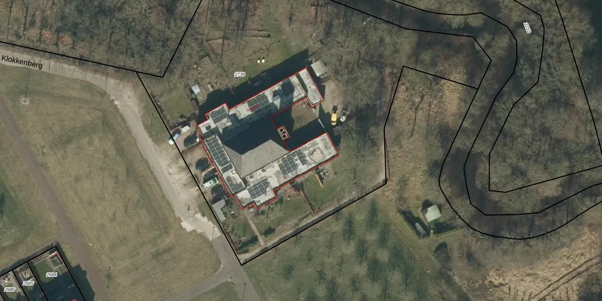 Het perceel waarop Klokkenberg 33 staat heeft een oppervlakte van 5795 m². Dit is een zeer groot perceel. De perceeloppervlakte wordt geregistreerd door het Kadaster. Gedetailleerde informatie over de maten van dit perceel kunt u vinden in het rapport Kadastrale kaart met maatvoering van Klokkenberg 33.