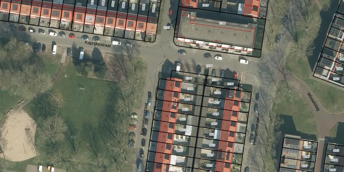 Het perceel waarop Knesselarestraat 44 staat heeft een oppervlakte van 168 m². Dit is een middelgroot perceel. De perceeloppervlakte wordt geregistreerd door het Kadaster. Gedetailleerde informatie over de maten van dit perceel kunt u vinden in het rapport Kadastrale kaart met maatvoering van Knesselarestraat 44.
