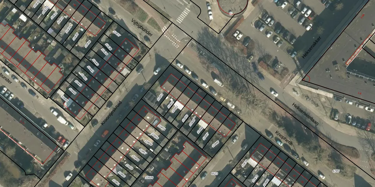 Gebruik de zoekbalk of klik op een perceel voor informatie over de adressen binnen dit perceel.