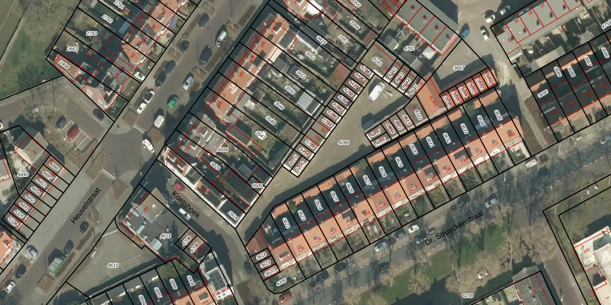 Het perceel waarop Koetshoek 3-Q staat heeft een oppervlakte van 20 m². Dit is een klein perceel. De perceeloppervlakte wordt geregistreerd door het Kadaster. Gedetailleerde informatie over de maten van dit perceel kunt u vinden in het rapport Kadastrale kaart met maatvoering van Koetshoek 3-Q.
