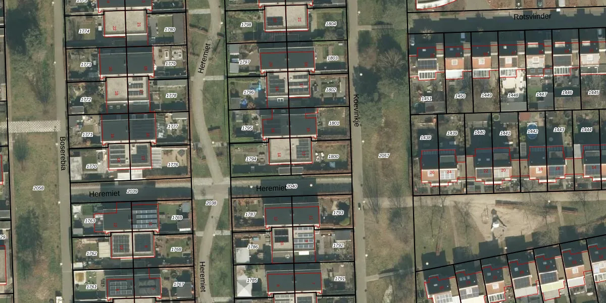 Gebruik de zoekbalk of klik op een perceel voor informatie over de adressen binnen dit perceel.
