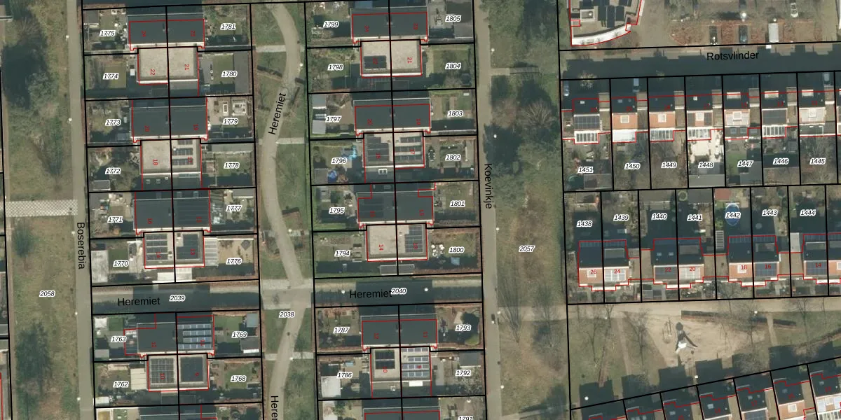 Het perceel waarop Koevinkje 15 staat heeft een oppervlakte van 213 m². Dit is een middelgroot perceel. De perceeloppervlakte wordt geregistreerd door het Kadaster. Gedetailleerde informatie over de maten van dit perceel kunt u vinden in het rapport Kadastrale kaart met maatvoering van Koevinkje 15.