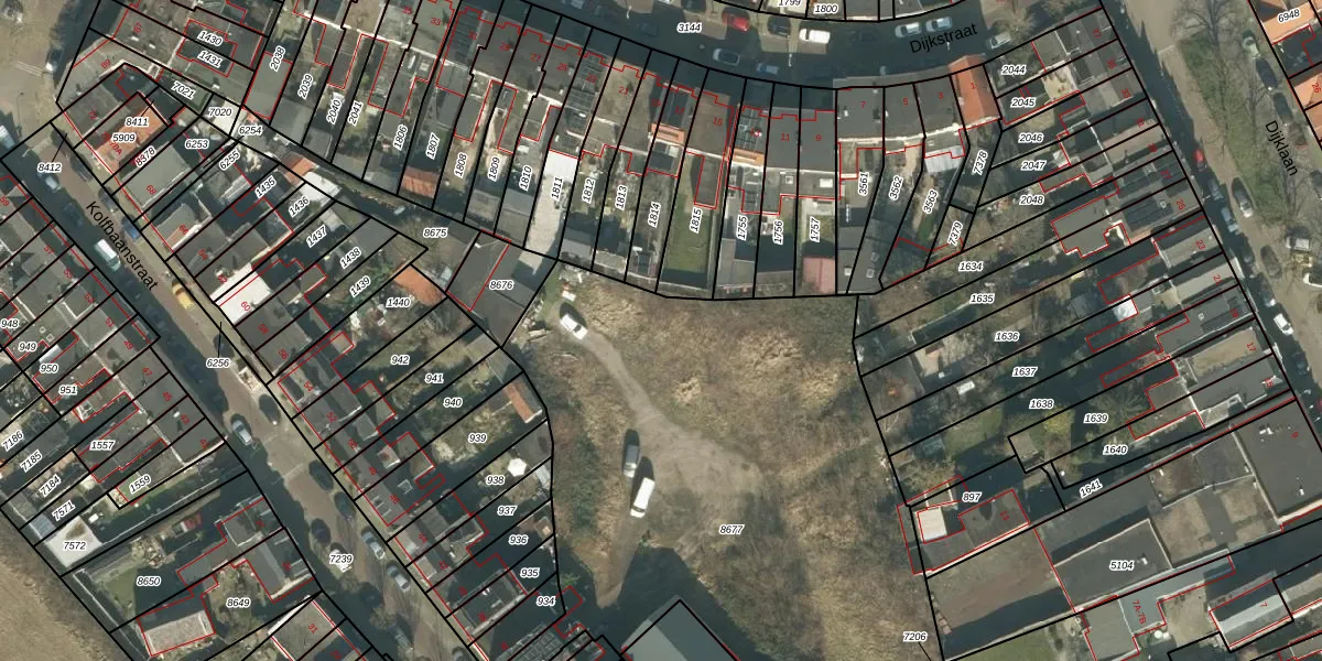 Het perceel waarop Kolfbaanstraat 30-A33 staat heeft een oppervlakte van 3605 m². Dit is een zeer groot perceel. De perceeloppervlakte wordt geregistreerd door het Kadaster. Gedetailleerde informatie over de maten van dit perceel kunt u vinden in het rapport Kadastrale kaart met maatvoering van Kolfbaanstraat 30-A33.