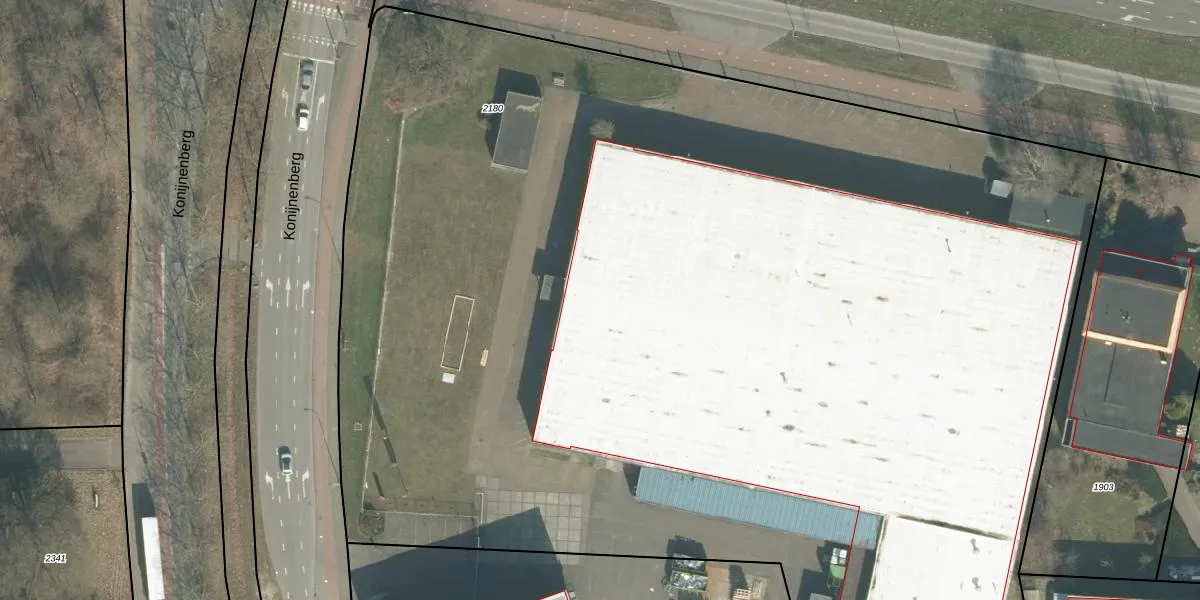 Het perceel waarop Konijnenberg 80 staat heeft een oppervlakte van 1,1 ha. Dit is een zeer groot perceel. De perceeloppervlakte wordt geregistreerd door het Kadaster. Gedetailleerde informatie over de maten van dit perceel kunt u vinden in het rapport Kadastrale kaart met maatvoering van Konijnenberg 80.