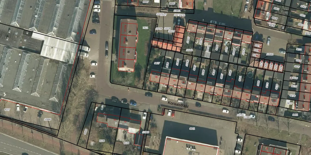 Het perceel waarop Koraalstraat 39 staat heeft een oppervlakte van 273 m². Dit is een middelgroot perceel. De perceeloppervlakte wordt geregistreerd door het Kadaster. Gedetailleerde informatie over de maten van dit perceel kunt u vinden in het rapport Kadastrale kaart met maatvoering van Koraalstraat 39.
