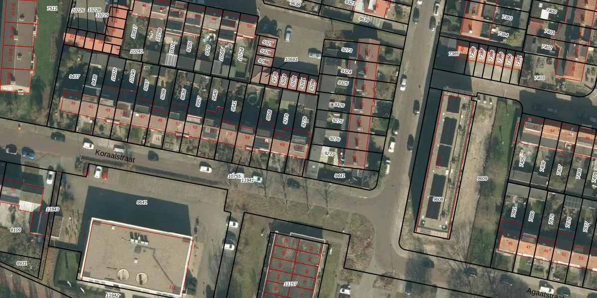 Koraalstraat 65 is gelegen op kadastraal perceel BDA00D9278. Deze kadastrale aanduiding is uniek en wordt gebruikt door het Kadaster om eigendomsrechten en andere zakelijke rechten vast te leggen. Het perceel maakt onderdeel uit van de kadastrale gemeente Breda.