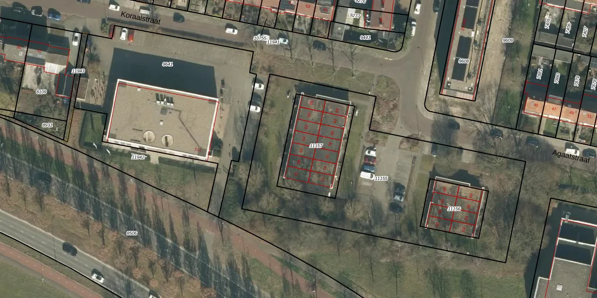 Het perceel waarop Koraalstraat 66 staat heeft een oppervlakte van 633 m². Dit is een groot perceel. De perceeloppervlakte wordt geregistreerd door het Kadaster. Gedetailleerde informatie over de maten van dit perceel kunt u vinden in het rapport Kadastrale kaart met maatvoering van Koraalstraat 66.