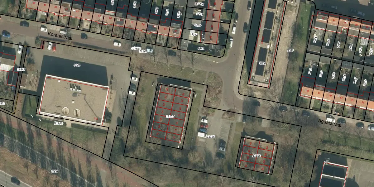 Het perceel waarop Koraalstraat 84 staat heeft een oppervlakte van 633 m². Dit is een groot perceel. De perceeloppervlakte wordt geregistreerd door het Kadaster. Gedetailleerde informatie over de maten van dit perceel kunt u vinden in het rapport Kadastrale kaart met maatvoering van Koraalstraat 84.