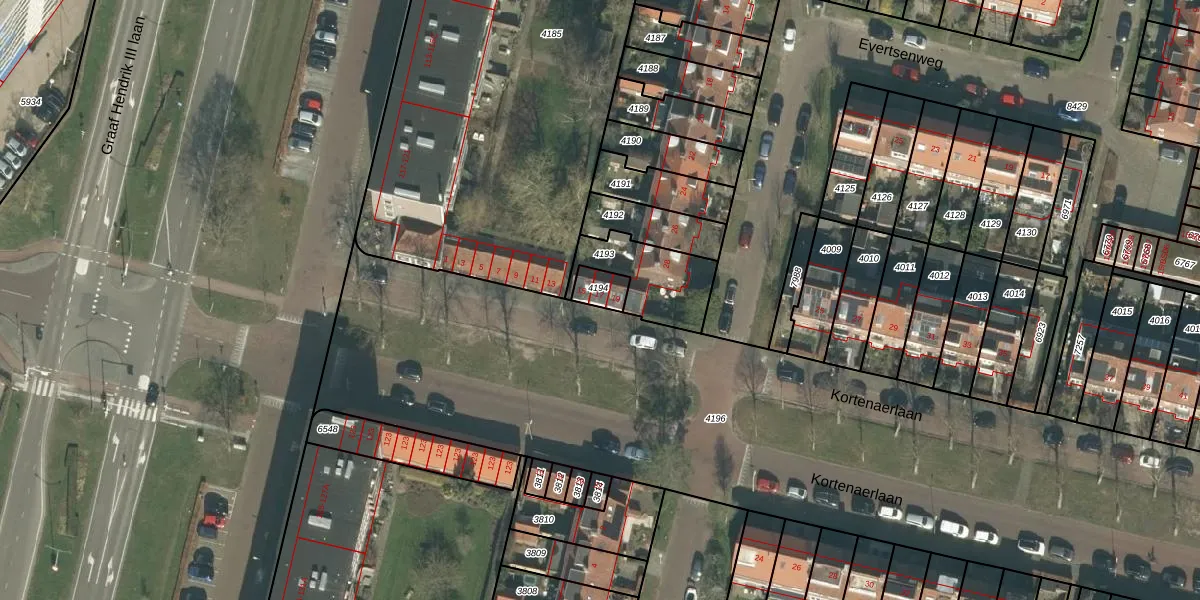 Kortenaerlaan 17 is gelegen op kadastraal perceel BDA00E4194. Deze kadastrale aanduiding is uniek en wordt gebruikt door het Kadaster om eigendomsrechten en andere zakelijke rechten vast te leggen. Het perceel maakt onderdeel uit van de kadastrale gemeente Breda.
