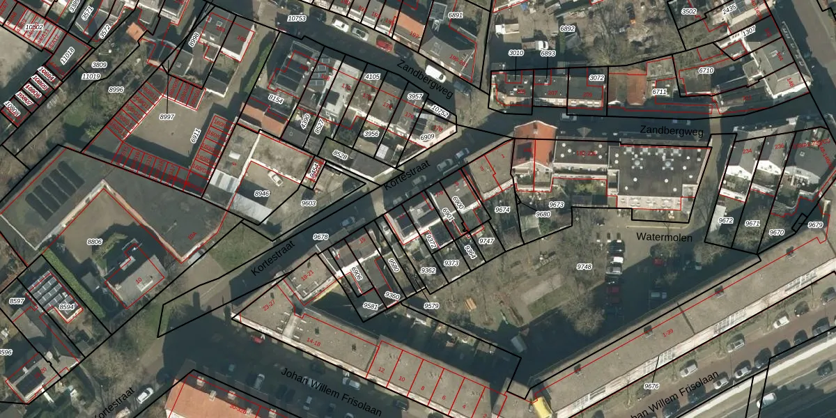 Gebruik de zoekbalk of klik op een perceel voor informatie over de adressen binnen dit perceel.