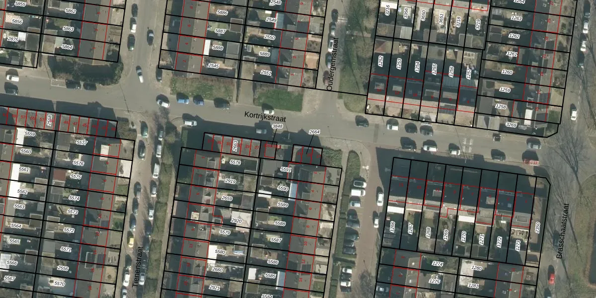 Het perceel waarop Kortrijkstraat 21 staat heeft een oppervlakte van 59 m². Dit is een klein perceel. De perceeloppervlakte wordt geregistreerd door het Kadaster. Gedetailleerde informatie over de maten van dit perceel kunt u vinden in het rapport Kadastrale kaart met maatvoering van Kortrijkstraat 21.