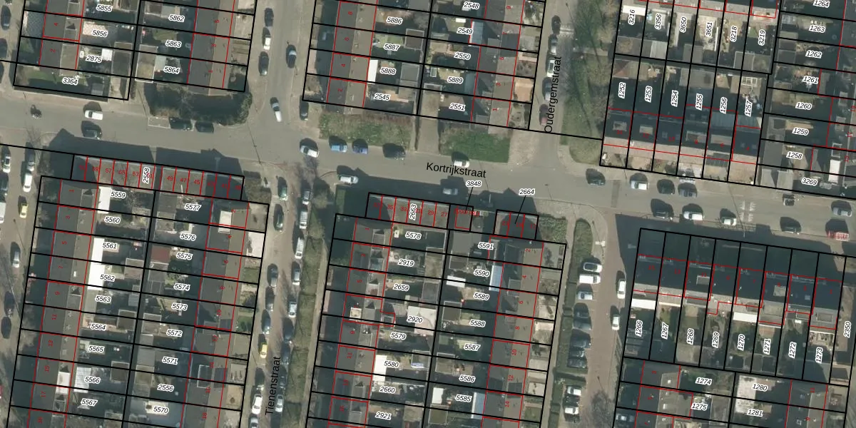 Het perceel waarop Kortrijkstraat 29 staat heeft een oppervlakte van 116 m². Dit is een middelgroot perceel. De perceeloppervlakte wordt geregistreerd door het Kadaster. Gedetailleerde informatie over de maten van dit perceel kunt u vinden in het rapport Kadastrale kaart met maatvoering van Kortrijkstraat 29.