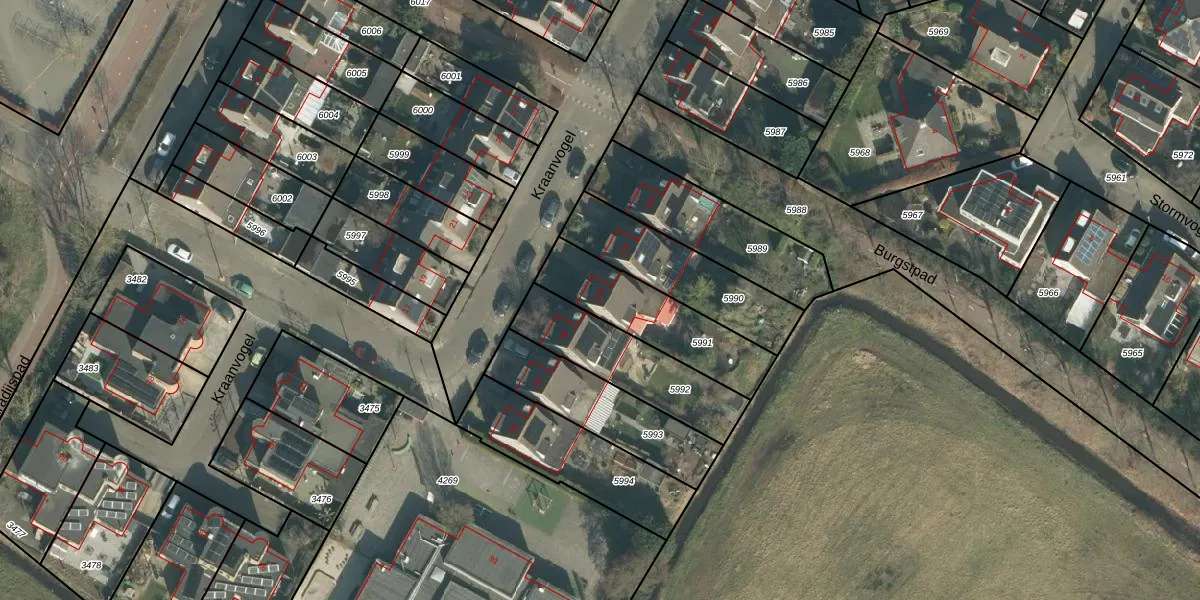 Kraanvogel 100 is gelegen op kadastraal perceel BDA00H5991. Deze kadastrale aanduiding is uniek en wordt gebruikt door het Kadaster om eigendomsrechten en andere zakelijke rechten vast te leggen. Het perceel maakt onderdeel uit van de kadastrale gemeente Breda.