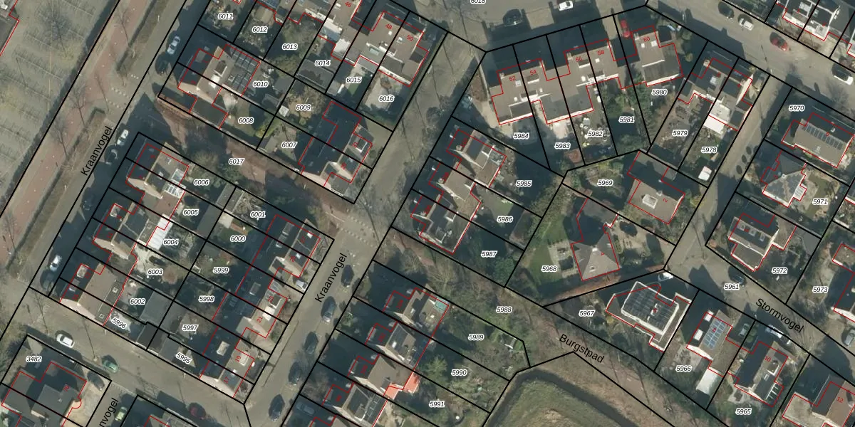 Gebruik de zoekbalk of klik op een perceel voor informatie over de adressen binnen dit perceel.