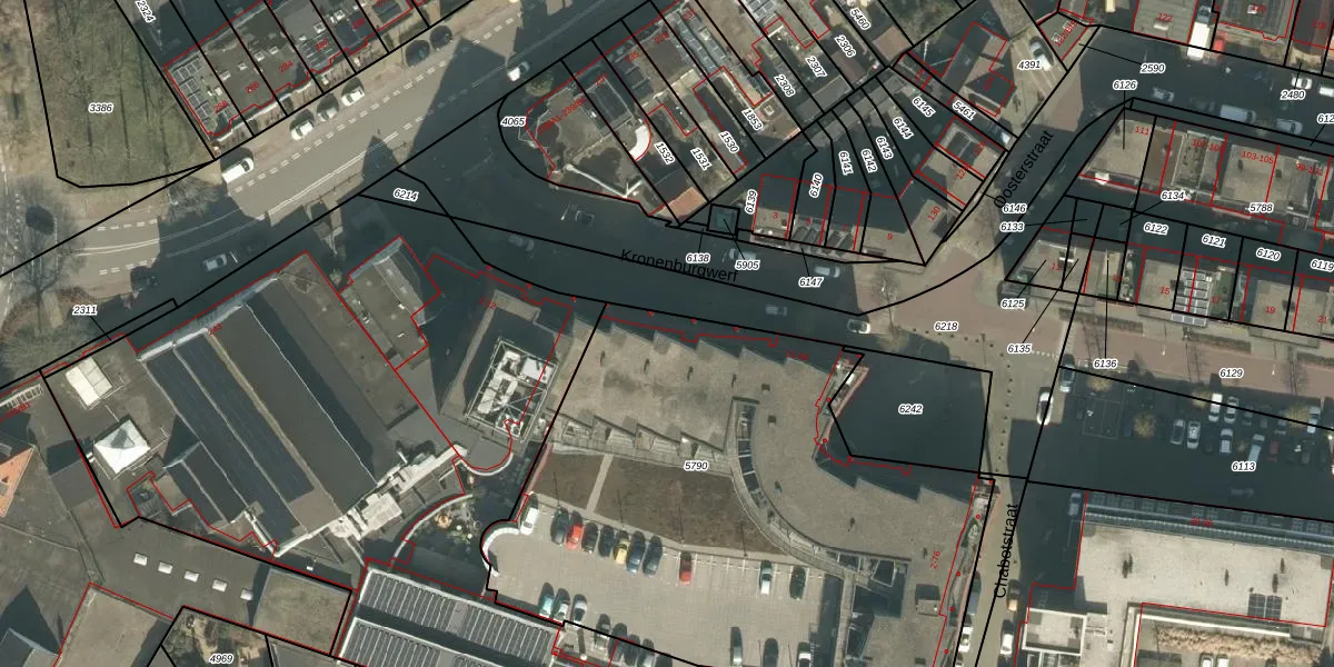 Het perceel waarop Kronenburgwerf 16 staat heeft een oppervlakte van 3095 m². Dit is een zeer groot perceel. De perceeloppervlakte wordt geregistreerd door het Kadaster. Gedetailleerde informatie over de maten van dit perceel kunt u vinden in het rapport Kadastrale kaart met maatvoering van Kronenburgwerf 16.