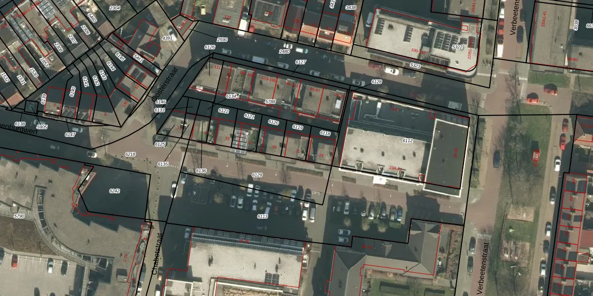 Gebruik de zoekbalk of klik op een perceel voor informatie over de adressen binnen dit perceel.