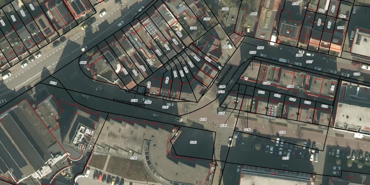 Kronenburgwerf 9 is gelegen op kadastraal perceel PCH00I6142. Deze kadastrale aanduiding is uniek en wordt gebruikt door het Kadaster om eigendomsrechten en andere zakelijke rechten vast te leggen. Het perceel maakt onderdeel uit van de kadastrale gemeente Princenhage.