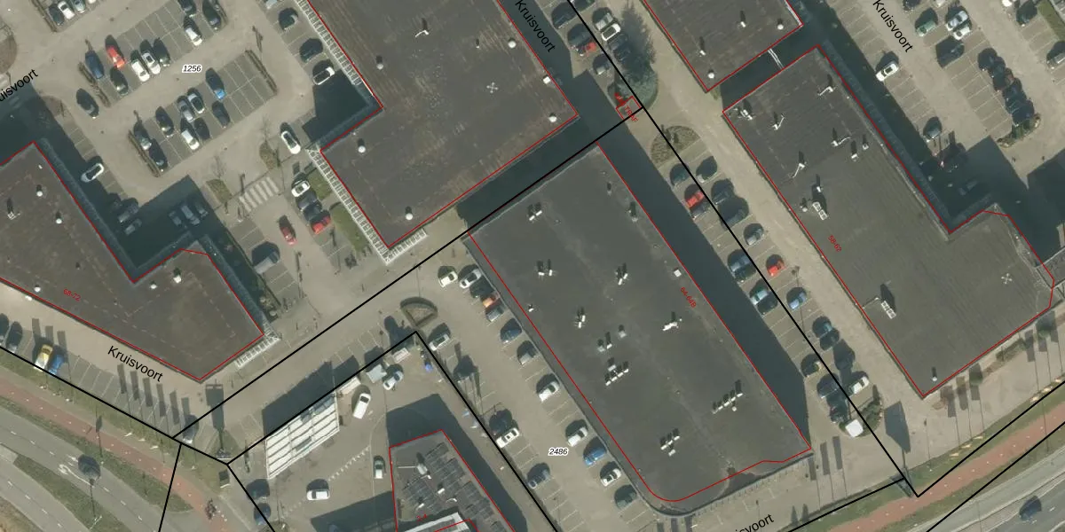 Kruisvoort 64 is gelegen op kadastraal perceel PCH00P2486. Deze kadastrale aanduiding is uniek en wordt gebruikt door het Kadaster om eigendomsrechten en andere zakelijke rechten vast te leggen. Het perceel maakt onderdeel uit van de kadastrale gemeente Princenhage.