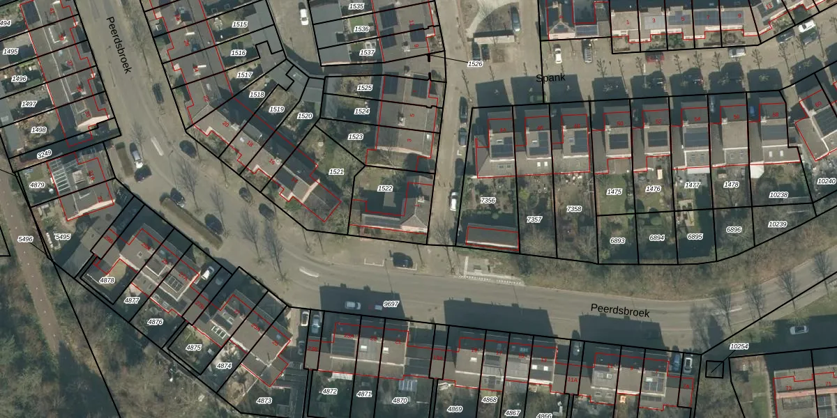 Gebruik de zoekbalk of klik op een perceel voor informatie over de adressen binnen dit perceel.