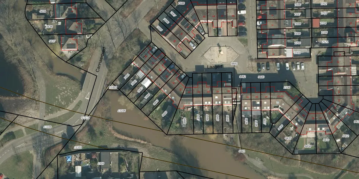 Laagerf 33 is gelegen op kadastraal perceel BDA00H9449. Deze kadastrale aanduiding is uniek en wordt gebruikt door het Kadaster om eigendomsrechten en andere zakelijke rechten vast te leggen. Het perceel maakt onderdeel uit van de kadastrale gemeente Breda.