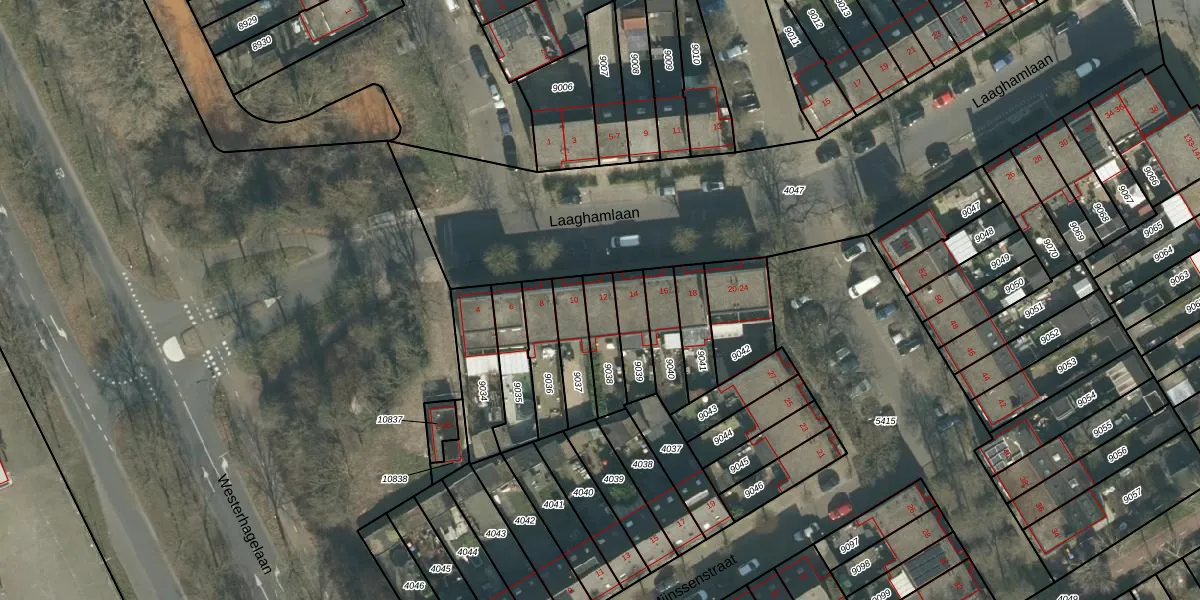 Laaghamlaan 12 is gelegen op kadastraal perceel BDA00H9038. Deze kadastrale aanduiding is uniek en wordt gebruikt door het Kadaster om eigendomsrechten en andere zakelijke rechten vast te leggen. Het perceel maakt onderdeel uit van de kadastrale gemeente Breda.