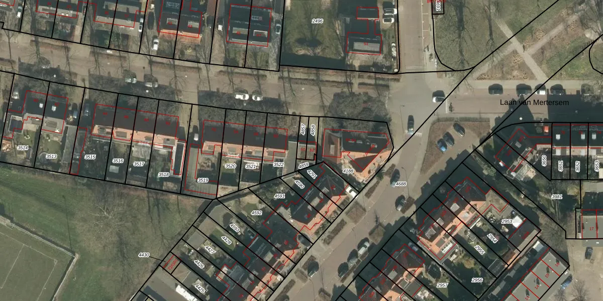 Het perceel waarop Laan van Mertersem 60 staat heeft een oppervlakte van 43 m². Dit is een klein perceel. De perceeloppervlakte wordt geregistreerd door het Kadaster. Gedetailleerde informatie over de maten van dit perceel kunt u vinden in het rapport Kadastrale kaart met maatvoering van Laan van Mertersem 60.