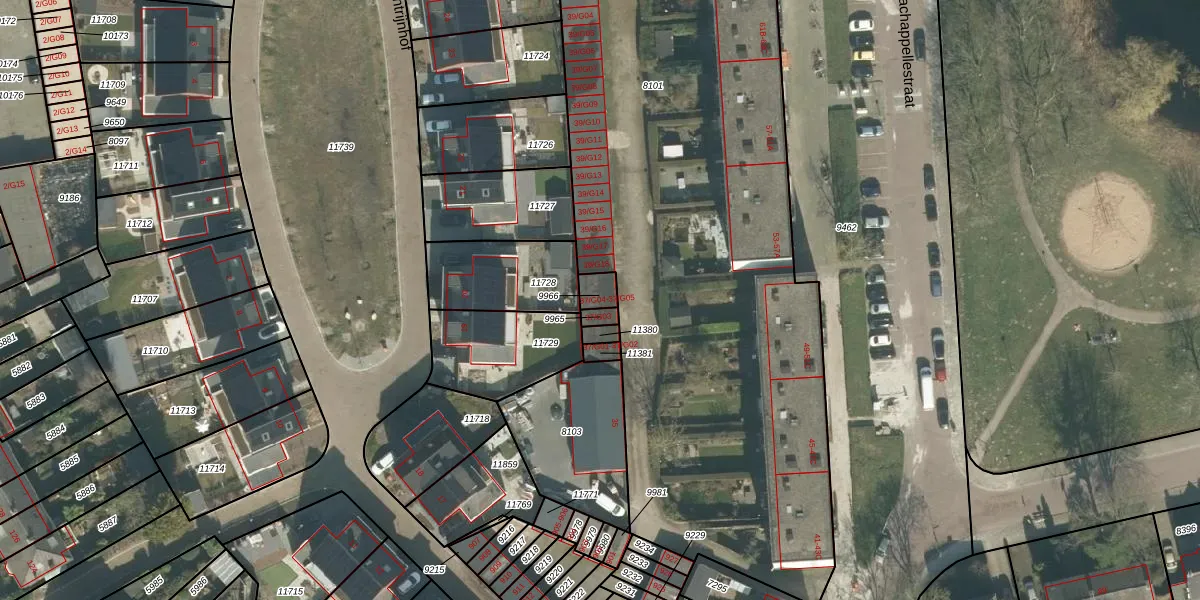 Lachappellestraat 37-G04 is gelegen op kadastraal perceel BDA00D9966. Deze kadastrale aanduiding is uniek en wordt gebruikt door het Kadaster om eigendomsrechten en andere zakelijke rechten vast te leggen. Het perceel maakt onderdeel uit van de kadastrale gemeente Breda.