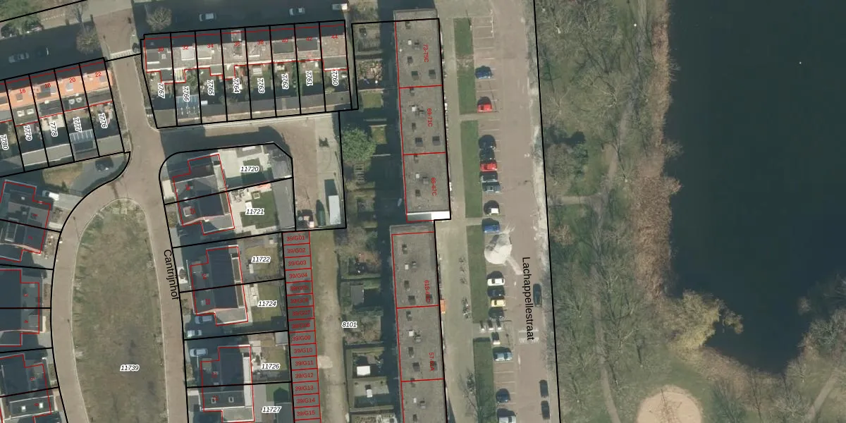 Het perceel waarop Lachappellestraat 65-B staat heeft een oppervlakte van 4724 m². Dit is een zeer groot perceel. De perceeloppervlakte wordt geregistreerd door het Kadaster. Gedetailleerde informatie over de maten van dit perceel kunt u vinden in het rapport Kadastrale kaart met maatvoering van Lachappellestraat 65-B.