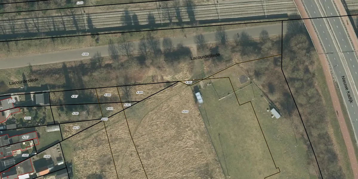 Het perceel waarop Lacourdestede 16 staat heeft een oppervlakte van 4440 m². Dit is een zeer groot perceel. De perceeloppervlakte wordt geregistreerd door het Kadaster. Gedetailleerde informatie over de maten van dit perceel kunt u vinden in het rapport Kadastrale kaart met maatvoering van Lacourdestede 16.