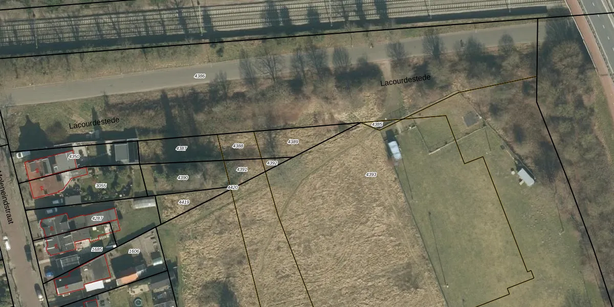 Het perceel waarop Lacourdestede 44 staat heeft een oppervlakte van 4440 m². Dit is een zeer groot perceel. De perceeloppervlakte wordt geregistreerd door het Kadaster. Gedetailleerde informatie over de maten van dit perceel kunt u vinden in het rapport Kadastrale kaart met maatvoering van Lacourdestede 44.