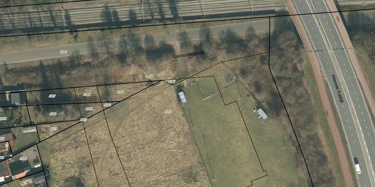 Het perceel waarop Lacourdestede 58 staat heeft een oppervlakte van 4440 m². Dit is een zeer groot perceel. De perceeloppervlakte wordt geregistreerd door het Kadaster. Gedetailleerde informatie over de maten van dit perceel kunt u vinden in het rapport Kadastrale kaart met maatvoering van Lacourdestede 58.