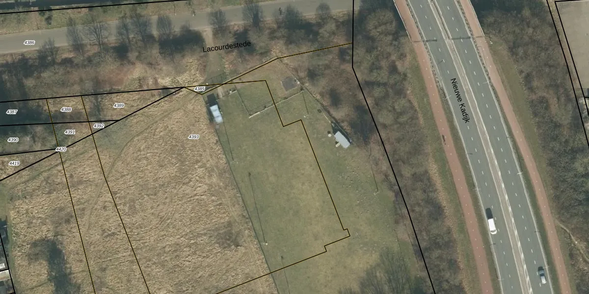 Het perceel waarop Lacourdestede 60 staat heeft een oppervlakte van 4440 m². Dit is een zeer groot perceel. De perceeloppervlakte wordt geregistreerd door het Kadaster. Gedetailleerde informatie over de maten van dit perceel kunt u vinden in het rapport Kadastrale kaart met maatvoering van Lacourdestede 60.