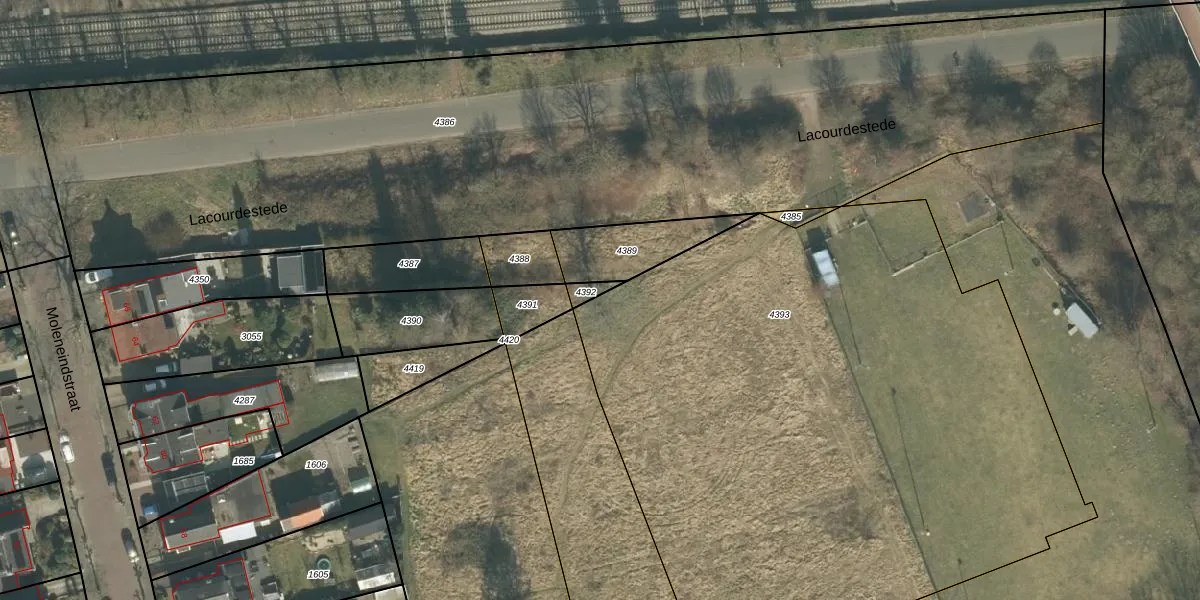 Het perceel waarop Lacourdestede 76 staat heeft een oppervlakte van 4440 m². Dit is een zeer groot perceel. De perceeloppervlakte wordt geregistreerd door het Kadaster. Gedetailleerde informatie over de maten van dit perceel kunt u vinden in het rapport Kadastrale kaart met maatvoering van Lacourdestede 76.
